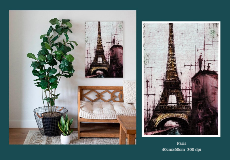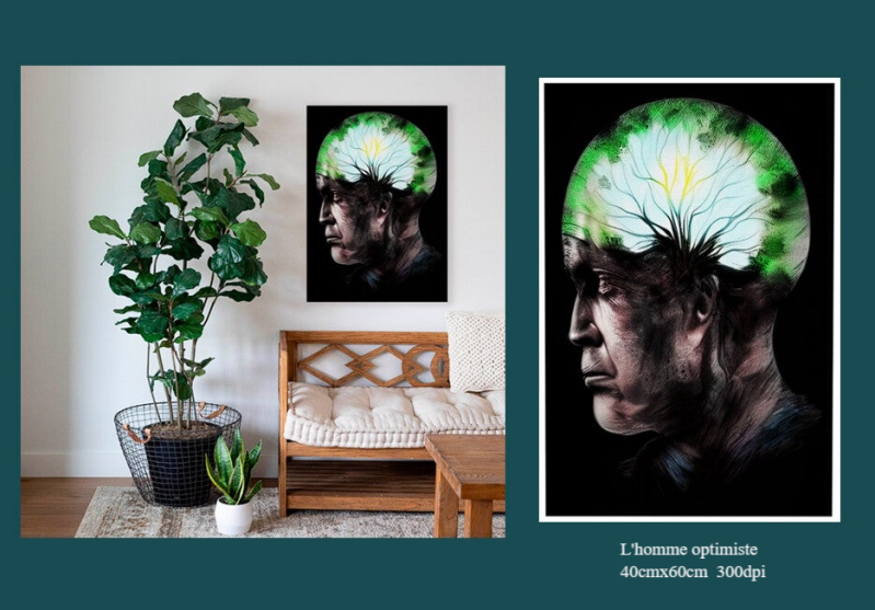 Canvas cependant il est possible de l ' encadrer en noir, en blanc ou bois brut en option
